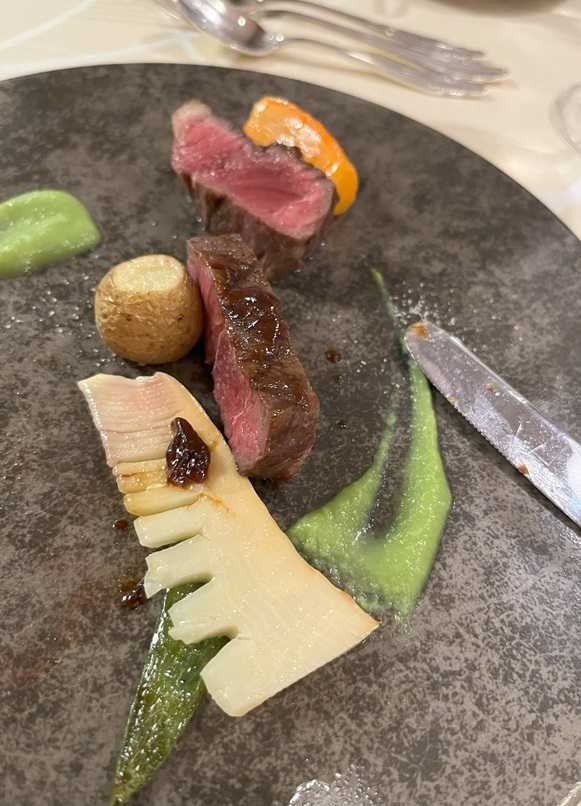 実は前半は、塩分も風味も、主張しているものが少ない、、、という感じがしていたのですが、メインに入ってくると、もう少し味わいが濃くなってきます。