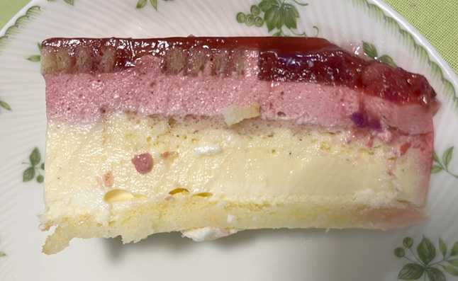 その上にはふわふわしたバニラカスタードのババロア、その上にはフランボワーズのババロアがのっています。