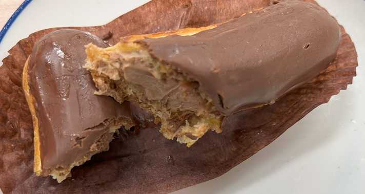 上面にチョコ、中もチョコクリーム。中のクリームはとろみがあるタイプ。