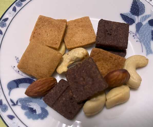 でも、甘さも炭水化物も控えて、小腹がすいたときに食べるためのおやつとしては、かみごたえもあるし、素材的にもよい、、、と感じたお菓子でした。