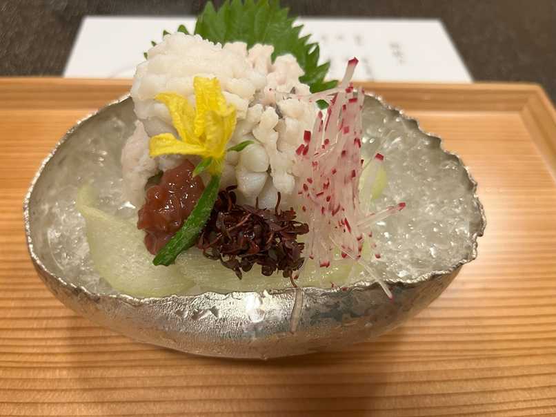 鱧、、、ってこんな華やかになるの?という美しい皿。まるで生け花みたいです。