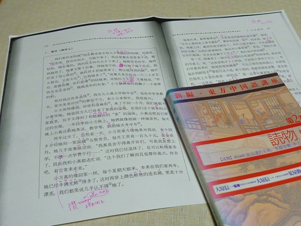 今日は日曜日。昨日、土曜日は休日出勤でした。なので昨日から「明日は休日を満喫しよう!」と決心し色々考えましたが、別に何も思いつかず。。。映画も見たいものがなく。。。というわけで音読練習。先週の「中国語書籍を読もう会@大阪」でトミモさんが話題の小説《长安的荔枝》の紹介中に、小説中の一節の朗読を披露してくださったんです。それを聴いてう、うまい。。。(;゚Д゚)プロみたい。いや、プロ?!と感動したのを思い出し、自分もちょっと中国語の文を音読してみようかと思いつきました。というわけで、早速音読用の文章の選定です。夜中に色々なテキストを引っ張り出してあーでもないこーでもないとしばらく悩み(実は「どれにしようか」と悩む時間が楽しかったりもします(;^_^A)結果「新編中国語講座 第2巻 読物編」の中の谢冰心の短編《落价》を音読することにしました。どこかで「味のある文章」と紹介されているのを見かけたのが谢冰心に決めた理由です。というわけで、昨日の夜は読む文章だけ決めて就寝。今朝は8時に起きて朝マックを食べに行き、その後コンビニに寄って音読用にテキストを拡大コピーし(色々書き込むため)その後図書館に行ってテキストのコピーに音読する時のためのピンイン等の注意書きを書き込みました。図書館では音読はできないので家に帰って洗濯や掃除を済ませて、午後から家族が出かけたので「今だ!」とばかりに音読練習です。しかし。。。全然ダメ(;一_一)過去にも何度か思い立って音読をしようとしましたけど、いつも途中で挫折。まぁ、理由は自分のあまりの下手さに耐えられないからなんですけど。大体、中国語を口から発するのって、何か月ぶり?もしかして何年ぶり?まず、声が出ませんよ 泣。まずぎこちなくざっと一回読んでみて、次に段落ごとに区切って同じ段落を何回か繰り返し読んで、次に意味を考えながら中国語っぽく聴こえるように読んで。。。とトータルで30回くらい読んだところで家族が帰宅したので音読練習終了。その後、夜に家族が入浴中にあと2回くらい読みました。結果、判明したのは自分、中国語読むのめっちゃ下手やんということですね~。分かりきっていることですけど 汗理想と現実が乖離しすぎている。。。orz中国語の本を読むにはしゃべりの能力は必要ないし、これからも中国語を話す機会なんてないだろうし。でも、でも、中国語を流暢に話せたらカッコいいなぁという憧れは常にあるんですよね。ちなみに私は2005年からコロナ前の2019年まで毎年1回中国に行ってたんですけど一人旅だったのでほぼ誰ともしゃべらず、コンビニの店員さんに“要袋子!”とか空港に向かうタクシーの運転手さんに“国际门口!”とか旅行中はいつも2~3回、それも一言しか話していないんですよね~。話すことはもうあきらめた方がいいのか。まだまだ頑張れるのか。自分でも分かりません。ところで今日読んだ谢冰心の短編《落价》。いまいちラストが心に刺さらなかったんですけど、この文章が書かれた1988年には反響があったんでしょうか?この時代の中国人にのみ理解できる心情なのかもしれませんね。私は3~4回目に読んでやっと意味が分かりました。というわけで、今日はとりあえず「何かやった!」と言える休日でした。明日も仕事なので早く寝ないと。