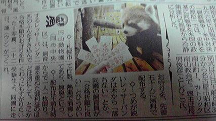 中日新聞を読んでたら、 札幌の円山動物園で、受験生のためにお守りを配るってそのお守りがなんと!!!レッサーパンダのふん!レッサーパンダは爪が鋭いから木から「落ちない!」さらに、フンだから運がつく!ってことらしい…熱湯消毒してあるので、においもなく清潔らしい…藁にもすがる受験生だけど、ふんにすがっちゃうか~でもそんな受験生が、動物園行ってる暇ないんじゃないのかな~…