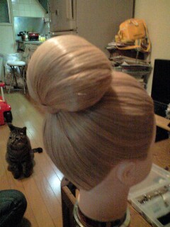 美容専門学校に通う娘。今日は初めてのまとめ髪のテストです。昨夜、家で練習してるとこを見てました。なんでもないシニョンに見えますが、細かくブロッキングして逆毛を立てサイドにまとめた毛の流れ、後ろはVの形に膨らみを持たせる、シニョンの形や艶など全て決まりごとがあるらしいのです。入学して1ヶ月半で手つきは、思ったよりさまになってました。写真のやつは娘曰く失敗作らしいですが(;^_^A 今日のテストがうまくいくように祈ってます。娘はほぼ毎日夕方からバイトを入れてるので学校で居残り練習など出来ない分、授業中は集中してると言ってました。頑張っているようです^^そんなに手先の器用な子ではないですが自分の好きな事だから集中して努力できるんだと思います。しんどいけど今は充実してると言ってました。あ、後ろの散らかった台所やちょぼんと座る猫はご愛嬌ということで(笑)