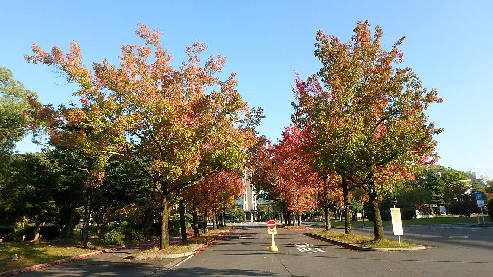 晴れの日の紅葉は青空との対比が魅力です。但し、日の当たっていない部分との明暗の差が大きすぎるという欠点もあります。