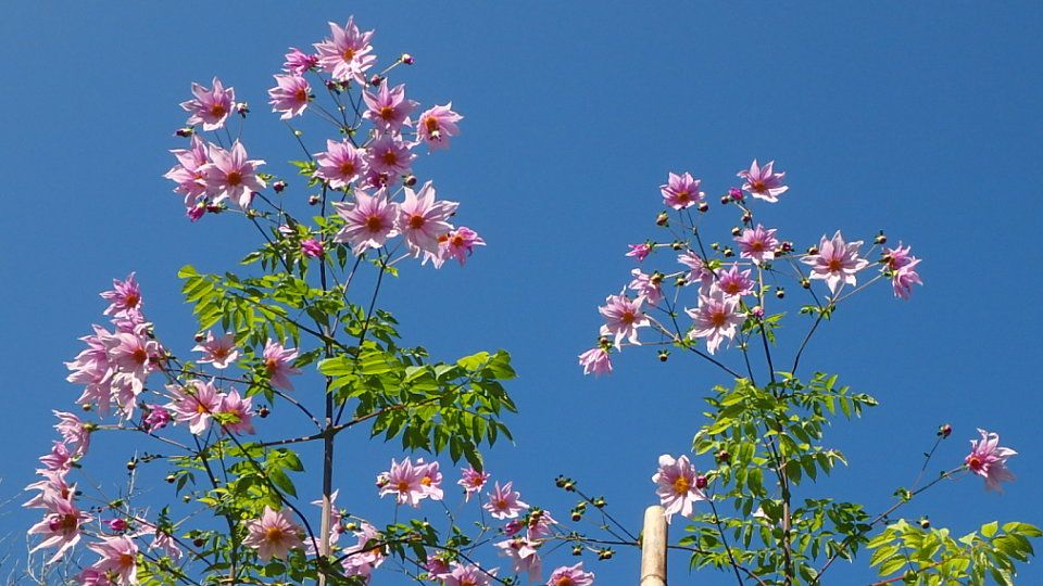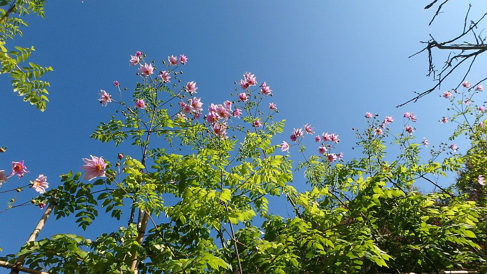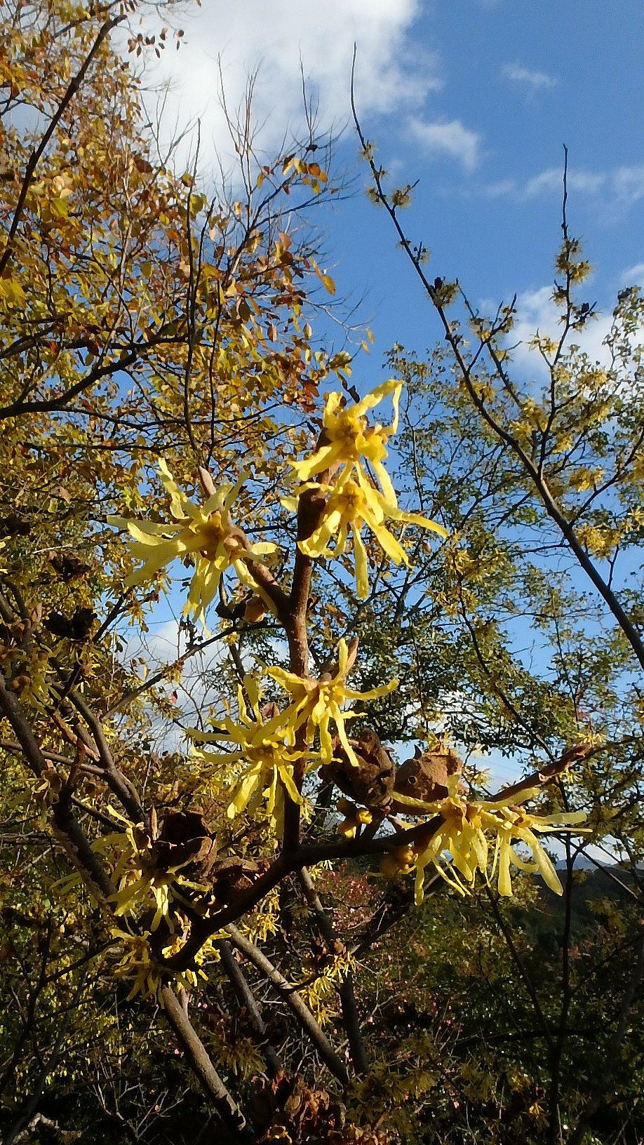 皇帝ダリアと皇帝ヒマワリは、同じ場所に植えっぱなしになっています。また、裏山の目立たない場所では、初冬咲きのアメリカマンサクが見頃となっていました。過去記録は以下の通り。