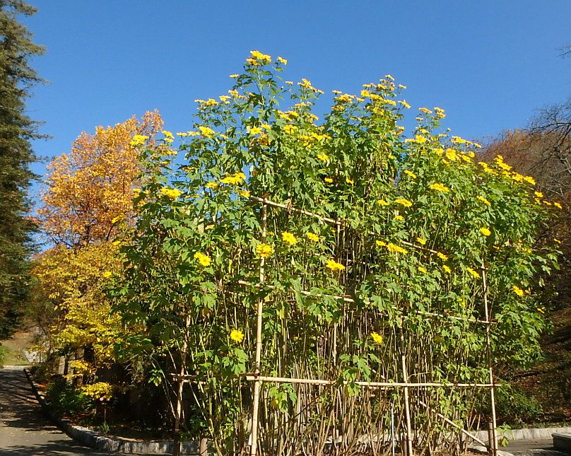 皇帝ダリア、皇帝ヒマワリ、アメリカマンサク(半田山植物園)