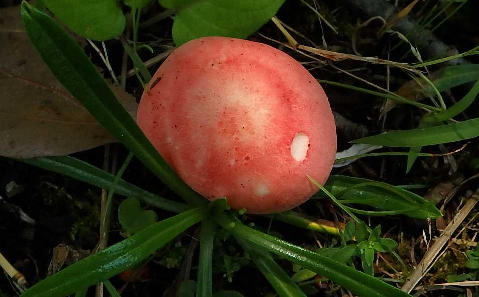 【赤いキノコ。毎年同じ場所で見かけますが、似ている種類が多く同定できていません。】