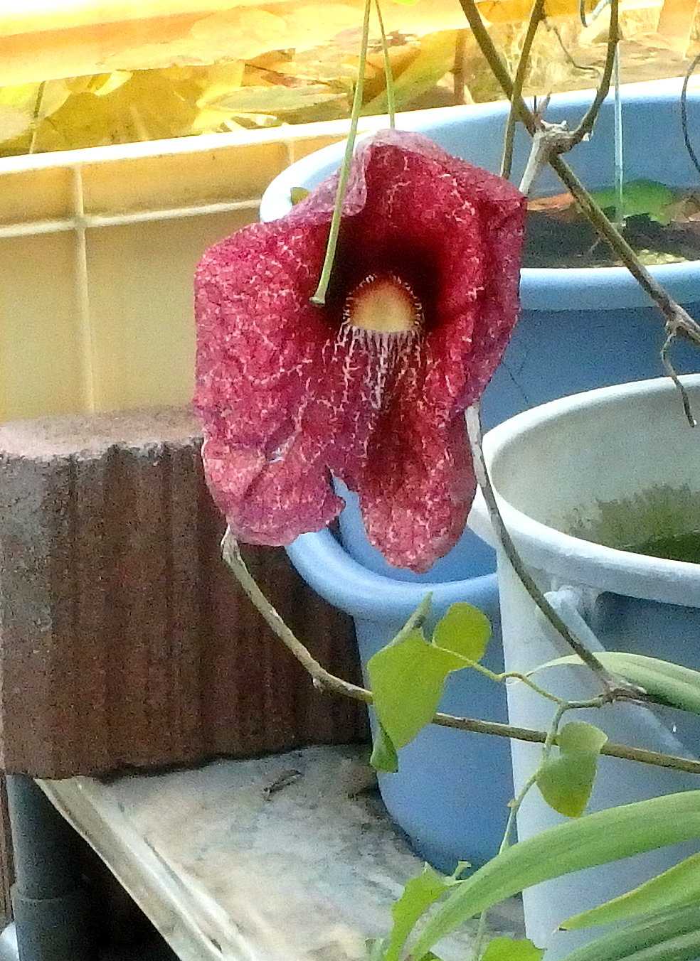 【バックヤード(管理区域)のアリストロキア・ギガンティア。温室側からズーム撮影】