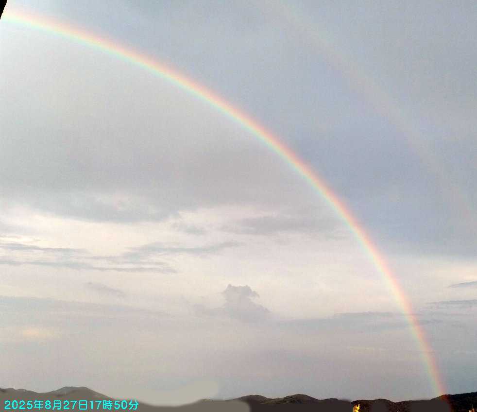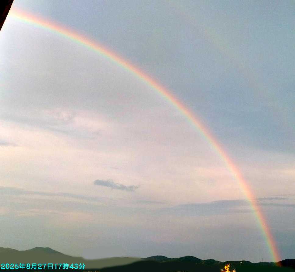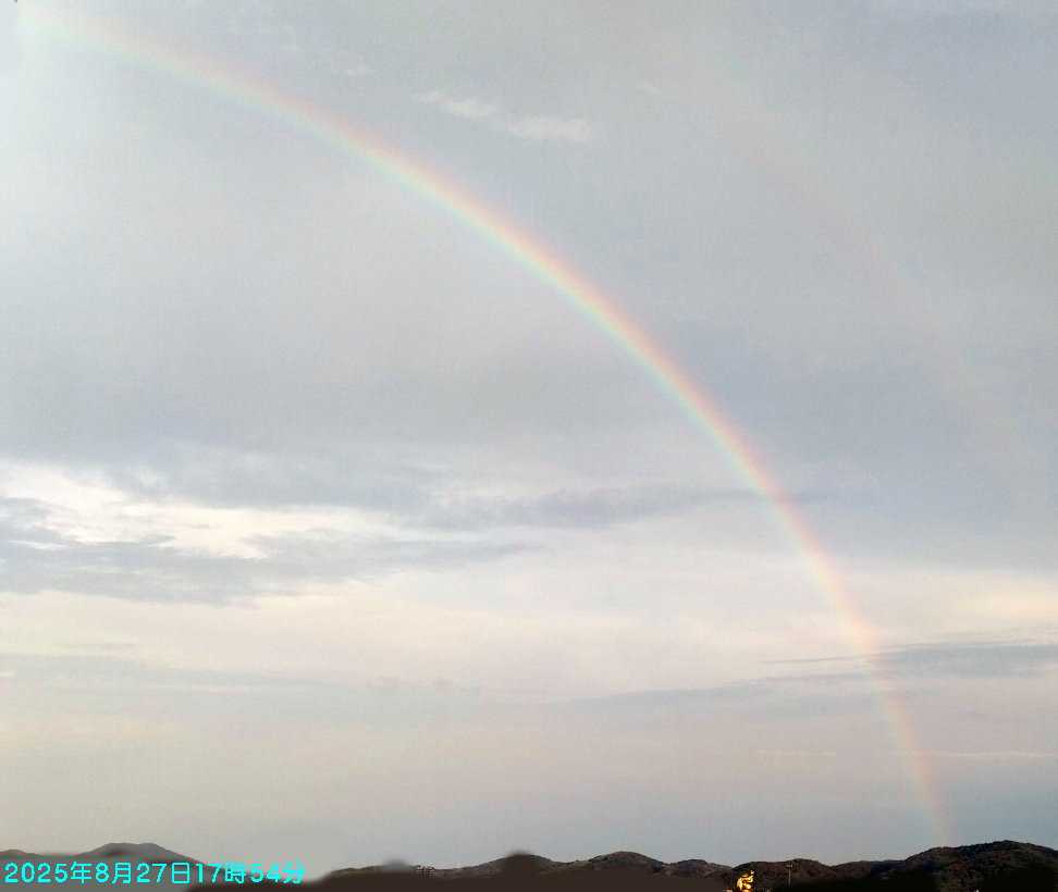 虹の出現は17時35分、虹が見えなくなったのは18時25分頃となりました。日没直前に赤い虹が見られるのではないかと期待しましたが【