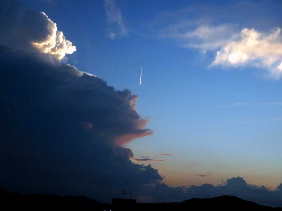 このほか、日没直後に、彗星型の飛行機雲も見えていました。