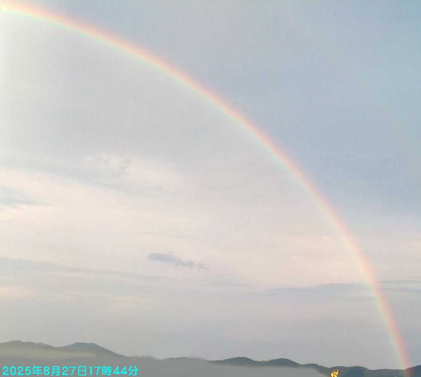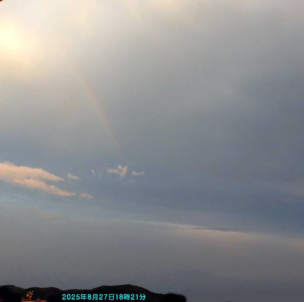 8月27日の夕刻、岡山でかなり鮮明が虹が出現しました。私のマンションからは右側(南側)の半分しか観察できませんでしたが、
