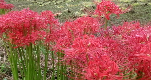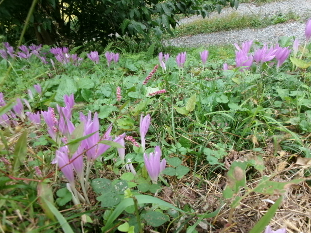 真っ赤な彼岸花が終わりを告げている 今年も彼岸を告げ秋を彩ってくれた 夏中家の前で次々と花開いていた日々草も終わりを告げるかの様に枯れ始めた 早く秋が来ないのか?夏の終わりを心待ちにしていたはずが何だか今となっては寂しい そんな時期一斉に庭の斜面に咲いたコルチカム別名秋クロッカスとかイヌサフランともいう 名前に犬が関係しているが訳はない 犬何て着くとオオイヌノフグリ等思い出すが(笑)イヌノフグリは果実が「犬のフグ〇」に似て?(笑)実はハートの形?( 笑)オバちゃん~でした!