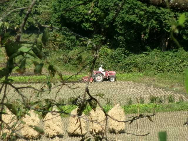 ビャンビャン~!ギャンギャン?文字では表せないな…ネコに濁音付けた様な鳴き声!キツネかな?家の直ぐ前辺りから聞こえる… まだ明けない薄暗い時間 家の周りを鳴きながら歩きそして鳴きながら田んぼへ下りて行った 何故に鳴きながら家の周りをウロツク?モグは聞こえないふり ララもいなくなった今、モグ一匹で余所者に挑む気合はもう無いのだろう 知らぬ存ぜぬが一番…昨日は鹿が家の横で鳴いていた 何故鳴きながら?何か警鐘を鳴らしているのか?モグよ、通訳だけでもしておくれ…今朝は雨 後、晴れ 湿度が高いのか今日は又暑い!10月だってのにな… 稲刈りが終わったのでと~ちゃん早速耕耘開始!「なんだ暑いな~」と戻って来ては水を飲み飲みトラクターに戻る このトラクター、かなりの年季物 ここの元オーナーの爺ちゃんが乗っていた物を譲ってもらった このトラクターが足代わりだった爺ちゃん トラクターで良く孫を送り迎えしていたっけな~その爺ちゃんも90何ぼかで何年も前に亡くなったと聞いた このトラクターもボロボロ 何度も動かなくなりその都度修理に時間が掛る もう遂に終わったと思った一昨年、あちこちに聞いて安いトラクターを探してもらった 今時安いトラクター等何処にも無いと諦めていた 所が突然息を吹き返した!「オオ~!掛った!」ゴ~~! 愛着ある音が響く まだ頑張ってくれ!とトラクターを撫でると~ちゃん これもわが家の歴史に刻まれている