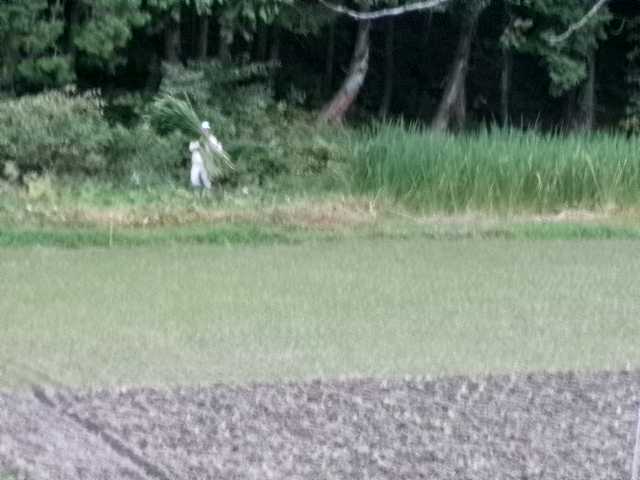 稲刈り終了~!モグの手も借りたい位だ!と言ったら手伝ってくれた(笑)稲刈り機の横を付いて歩き、稲を運ぶ一輪車の横を付いて歩く 稲を踏んずけているので稲が抜ける 一輪車の前で止まる「もう!モグ邪魔!」と言うとと~ちゃん「なあ、モグ可哀そうに!手伝ってるんだよな~」と… モグを見る モグ、ちらっと見て横目で笑う 最後の稲刈りは上から2番目の田んぼ 毎年一番上の田んぼがぬかるんでいた が、今年は一番上の田んぼは運動靴でも歩ける位乾いていた 2枚目の田圃が最後になった理由が乾いていなかった為 長靴を履いて来て良かった が、それでも奥の方はかなりぬかるんでいる マズイ!長靴が抜けない!無理やり抜いて又更に腰が不調に… 参ったな… 水が溜まっていたので稲も長くて濡れている バリバリの稲、重い!一輪車に沢山乗せようものなら動かない!最後のこの田んぼは試練の多い稲刈りとなった 最後の重い青い稲をかけた「終わった~!」「終了~!」万歳~!思わず声が出る 稲刈り機バインダーが調子悪くていつ終わるか等とも思った 何だかんだと言っても我が家始まって以来の超速稲刈り! 山合の我が家の稲刈りはいつもなら10月の半ばに始まるのだから この夏の暑さで稲刈りが早まったのは間違いない 我が家の歴史に残るだろう