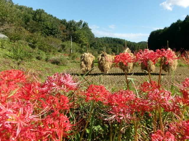只今、彼岸花満開!我が家迄の一本道は今、彼岸花の赤い道が繋がっています 春はここが黄色の小径でした 秋は赤い小径 冬はただひたすら銀世界… 朝のラジオでは専門家が彼岸花を開設していた 蜂が蜜を吸えるような花の仕組みになっている が、彼岸花は種子系ではない 球根です かつて大昔は種子を残す為に彼岸花自体が蜂に最も適した形になったとか!へ~… さて、秋!まずは食欲の秋!梨ぶどう等もお店に並ぶがうちでは栗!サツマイモも少しづつ収穫しながら小時飯には焼き芋!しかし、私は栗かな… 昨日剥いた栗を早速栗ご飯に!先日のお萩に多めに精米した餅米が丁度残っていた!餅米の方が間違いなく美味しい!栗ゴロゴロ入った栗おこわ!できた!栗を剥くのに時間かかったが我ながら美味しそう!早速息子の家にお裾分け!お嫁さんも喜んでくれた!何か嬉しい帰り道 ニヤケ乍ら山の我が家の坂道を上る さっきまで青い空に白い雲だった 茜色の空が笑っていた