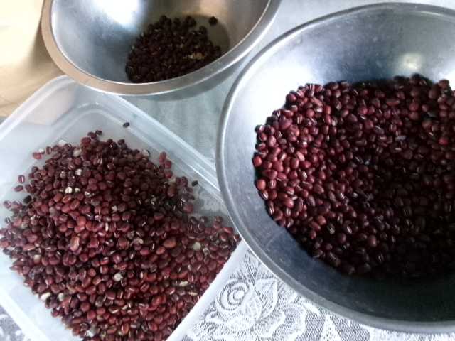 秋のお彼岸でした! 春はぼた餅、秋はお萩、間違わない様に これは私自分への戒め!以前間違えて書いてしまった(汗)直売所辺りではパン置き場の下のお萩を購入する人の姿が繋がる 「僕はこし餡~!」子供連れのお客さんは大体こし餡派! 私もそうだった うちの子供達もそうだった 何故だろう?今は粒餡派!年配の方は「粒餡は無いのですか?」とパンを並べていると聞かれる事が多い と言う事は私もその歳になったと言う事か…配達から帰ると早速お萩作りに取り掛かる と~ちゃんは既に稲刈り4日目!ギックリ腰の私は関知するまで無理しない様にお休みお萩作りはまず我が家の場合、小豆の選別から始まる 結構かかる そして、もち米の精米! 選別した小豆を炊いて餡子に!こし餡派結構手間が掛るが粒餡なので楽 甘さ控えめにしてグツグツ煮込む ゆるいとベト~っとするのでなるべく水分を飛ばす訳で この段階で焦げる事が多いので着きっきり 出来上がったら冷ます その合間にもち米を蒸す 後は丸めて塗りたくるだけ 今年も沢山のお萩が出来た! 子供達も巣立ったのにこの量!どうするの…? 息子の家にお裾分け