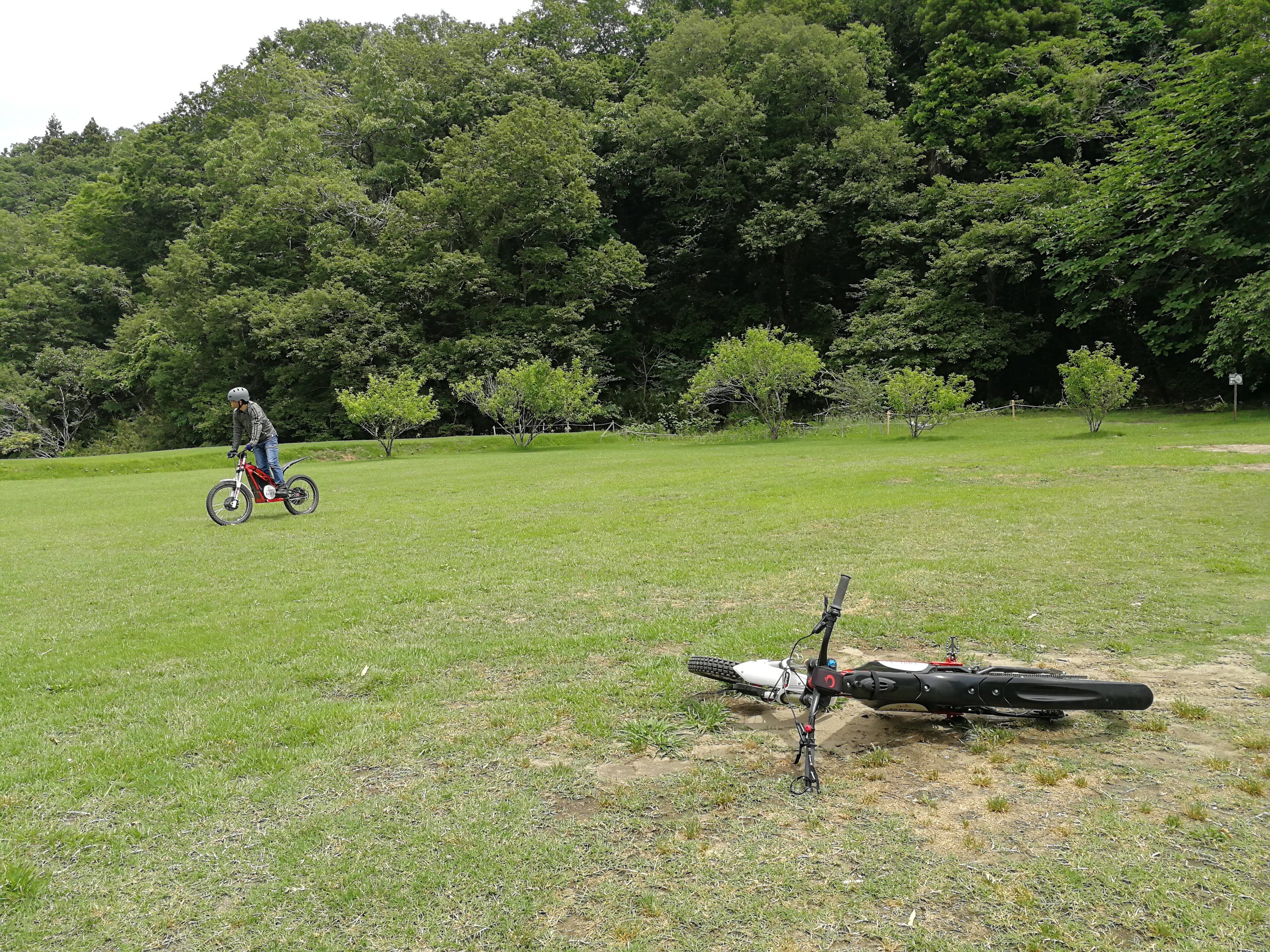 フォレストライダー千葉。これは良い物だ。市原から茂原の方に抜ける山の中にある総合スポーツリゾート施設リソル生命の森の中、そこの大きなアスレチックっぽい?施設のターザニア、の更に一アトラクションのロングジップスライド(445mも有るらしい)。そこの敷地内に間借りしている?っぽいイベントのフォレストライダー。内容は何でも無い、電動トライアルバイクで敷地内を走るって物。私有地内なので免許も不要で、子供向けのバイクも用意されているし、用具も貸してくれる。バイクや時点車の経験があれば、ちょっと講習で山の中を走り回れる。重量も無いので、多分、倒しても大した事にはならないと思う。現時点でコース拡張中だと言うので、暫くしたら又行きたいと思う。