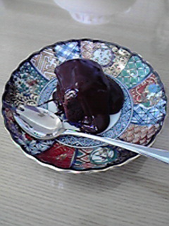K子さんちで,ご馳走になりました。濃厚なチョコケーキにチョコレートがかけてあります。コーヒーの苦みと合わさって,ホッと一息つきました。ごちそうさまでしたあまりにおいしかったので主人に買って帰りました。でも,具合が悪くて休んでいます