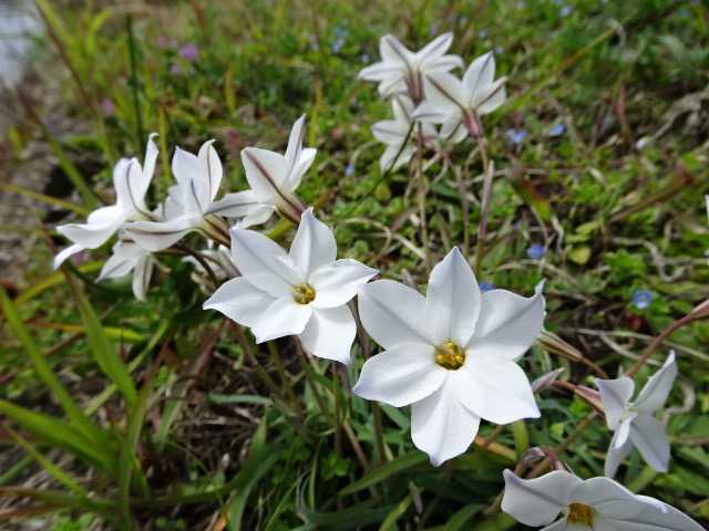 白い花が咲いていました。ハナニラのようです。風で揺れていました。川岸で咲いていました。暖かい午後でした。