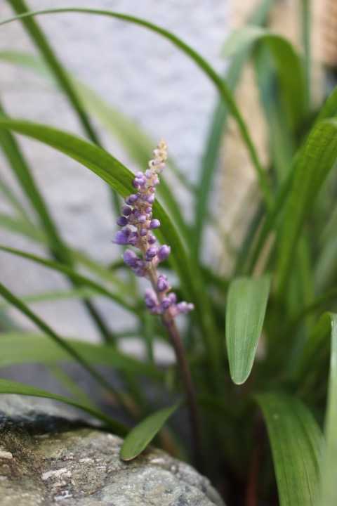 庭の片隅で咲いていた花です。ヤブランのようです。小さな花が房になっていました。日陰でひっそりと咲いていました。花のまわりは、爽やかな空気で満たされているように感じました。