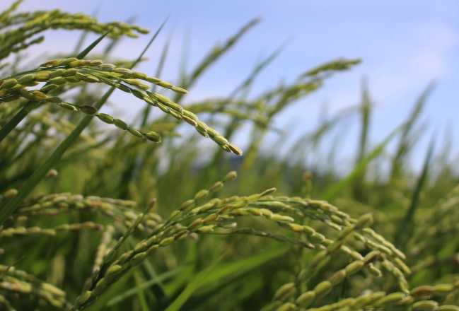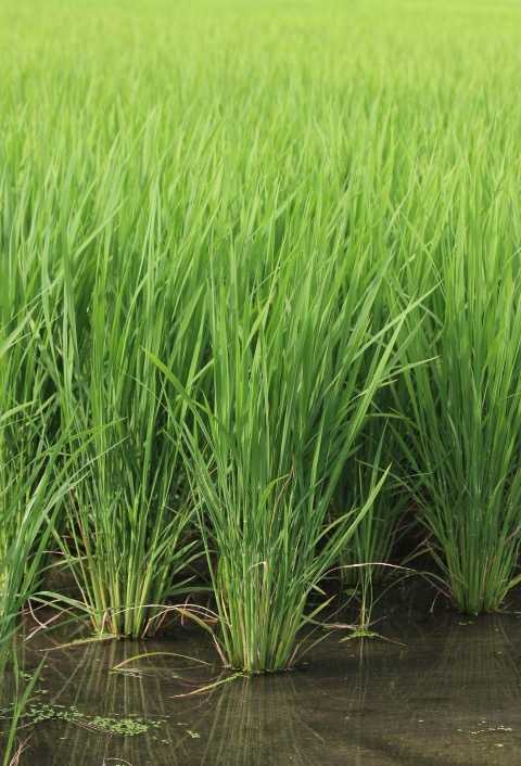 田んぼの横を通りました。イネが大きくなっていました。風が吹いていました。田んぼ全体が 波のように揺れていました。