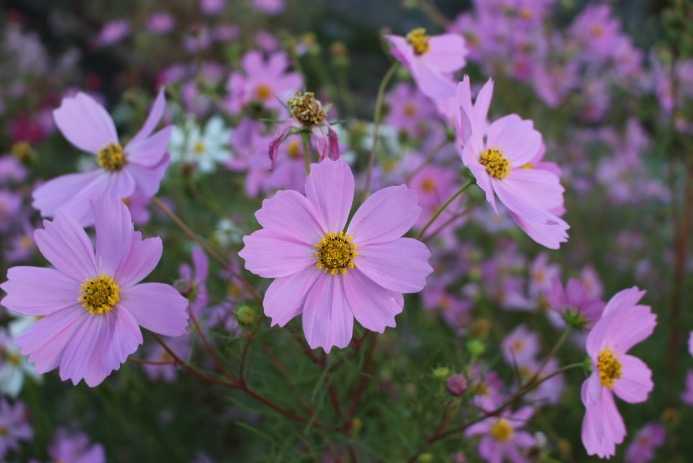 コスモスが 咲いていました。たくさん 咲いていました。白い花も 咲いていました。花が ほわんと 浮かんでいました。淡いピンクの 花でした。