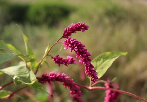 草むらで見かけた 植物です。イヌタデ、草丈が高かったので、オオイヌタデのようです。花の房が 鮮やかな色でした。青空が 広がっていました。少し風の吹く 朝でした。