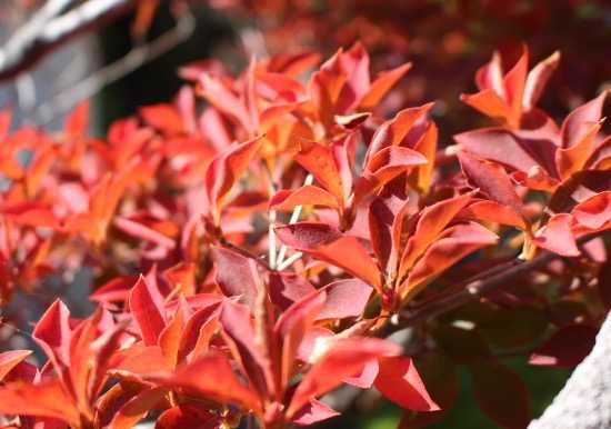 ドウダンツツジの 葉が、色づきました。よく晴れた 日でした。光が まぶしい くらいでした。背中が ぽかぽかと、温かく 感じました。