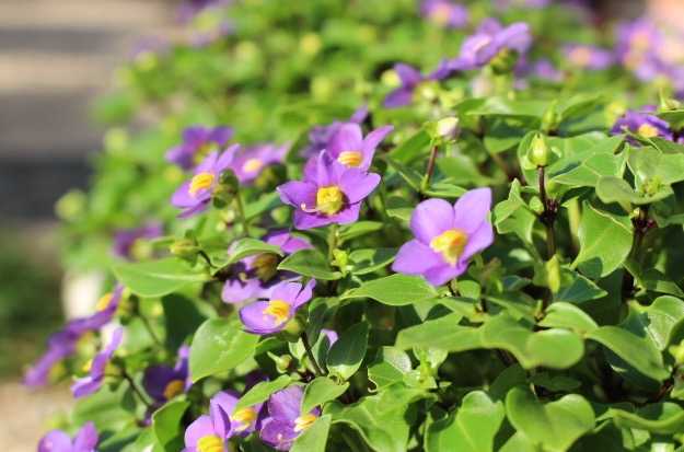 プランターに 植えていた花が、咲きました。エキザカム、という名前の 花です。エキザカム・ロイヤルディン という品種です。多年草ですが、何年も続けて 咲く花ではなく、一年草として 扱われることが 多いそうです。バッタが とまっていました。オンブバッタです。じっと動かず、ひなたぼっこを 楽しんでいるように 見えました。