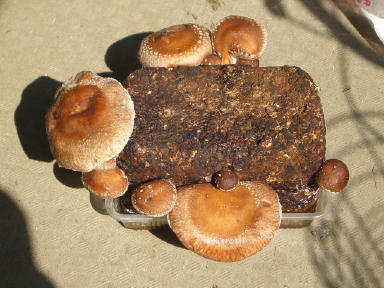 今日の収穫です。じゃ~~~ん。左上の茶色い変な奴は椎茸です・・・放置し過ぎで傘が広がってしまってます・・・ブッ。しいたけ栽培キットは今の時期はハッポースチロールの中に置いています。毎日、霧吹きでお水をあげてるだけです・・・。右側はバジルと青シソです。まだまだ、たくさん収穫できそうです~~ムフフ 青シソは醤油とみりんを入れたタッパーに漬けて置いてしんなりしたら刻んでご飯と混ぜ混ぜ。おいしいのですぅ~~。種から育ててる「おかひじき」もともと、海辺に自生するだけあって土が乾燥してもへっちゃらみたい。これはサッと茹でていただくのですが癖も無く歯ごたえがシャキシャキしていてさらに栄養価も高くパーフェクトなお野菜です。おいしいよ~。蕾ができてますーやった!以前、クリーニング屋さんから頂いたのに・・・枯らしてしまったのですさらに種播きして増やそうとやってみたのですが双葉まできて枯らしましたそして、負けじとまた種まきした所、大きく育ってくれました。ジャ~~ン種まきの時期が悪かったらしい。「唐辛子は種から育てるのは温度の管理が非常に難しいらしいので苗を購入して育てた方が良いでしょう」・・・と園芸の本に書いてありました。実が赤くなってもほんの2CM位にしかならないんです。沖縄のコーレーグースに入っている物より一回り細くて小さいんです。同じに種まきしたものが鉢の中に3本植わってますが成長が全然違うんです。何故か?????早く、真っ赤でかわいい実をつけて欲しいです。ちっちゃくて真っ赤でメチャメチャかわいいのですが食すと ぶっ飛ぶ程!辛いんだぜ!今日は最後に妻を亡くしてしまったシーべりーの夫をお見せします。シーベリーともサジーとも言うみたいです。一本寂しく植わってます。鉢の土の上にはシジミの貝殻を置いています。2ヶ月ほど前に雌の木が駄目になってしまいました。原因不明。シーベリーは雄の木、雌の木がないと実が付かないんです。悲しげな雄のシーベリー・・・。土壌は気にせずガンガン育つと聞いていたのですが・・・枯らしてしまいました。早く、お嫁さんを探してあげなきゃいけませんね。オオ!そうだ!普段ならアリなら探さなくても自然に目に入ってしまうのですが今日は驚きです。一匹も見かけませんでした!アリホイホイの効果絶大?