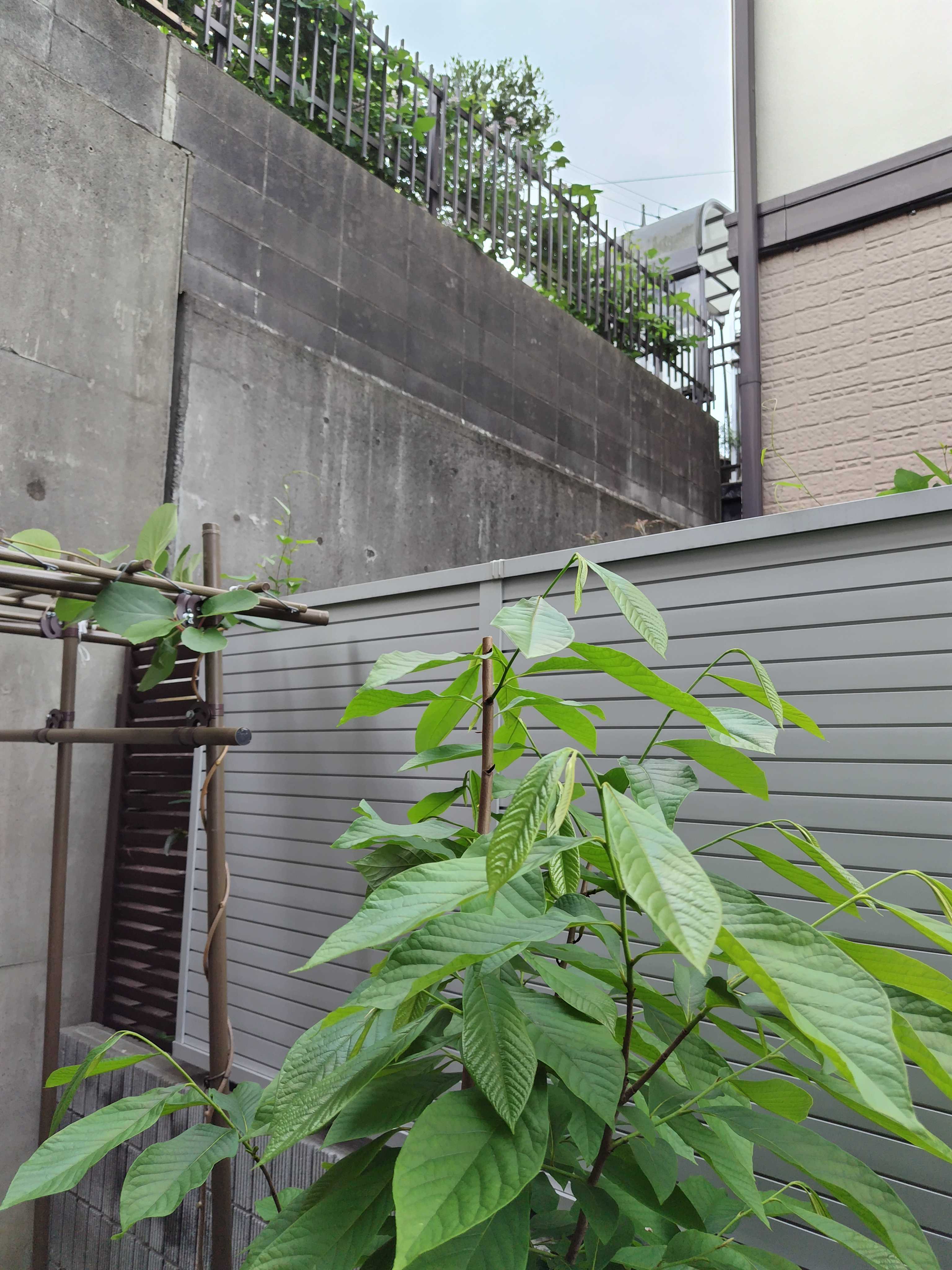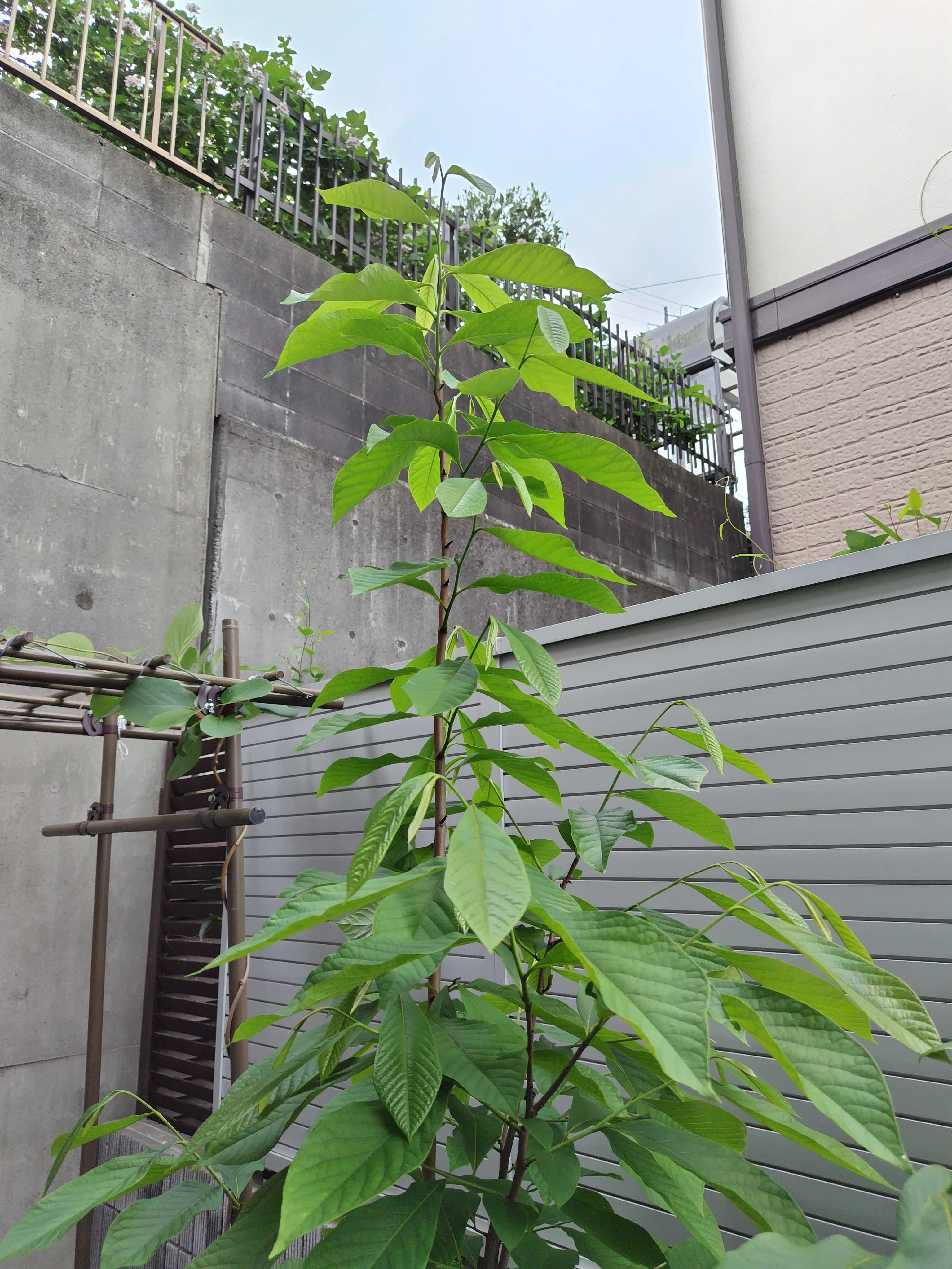 それから、3本あるポポーのうちの1本が、ぐんぐん伸びて、おそらく2メートルを超えてきた。