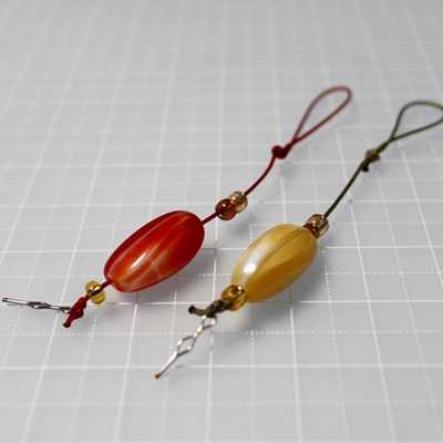 これまでになく秀麗な見た目。塗りが上達しましたわけでなく、ガラスビーズです。秋口あたりに軽いオモリの仕掛けも面白いもんだと思いまして。また、ハゼ釣りは渓流やチヌなんかと異なり仕掛けが魚に気付かれることはマイナスではなく。気付かれることを気にしない、むしろ昨今は存在をアピールしていく市販仕掛けも多いです。軽量に仕立てるなら、目立たないことを考慮しなくてよいのなら、鉛やタングステンである必要はないのでは?ということでガラスです。利点は見目よろしい他は特にない気がします上のに使ったビーズの重さは約1.1g、0.3号オモリ相当。オモリとしての実効力は質量だけではなく、体積増による浮力増や水の抵抗増なども関係してきますが細かいことを考え出すと汽水の比重が~なんて話になりかねないのでその辺はひとまず無視です。浮かなければよいのです。ちなみにガラスの比重は約2.5 (アルミ2.7 鉄7.8 鉛11 タングステン19)ひとまずの試作品。脳内ネームはカニカマとササカマ性能や使用感は・・・どうなんでしょうねこれ。作ってみての感触としては、10月ごろ流れの弱い羽田あたりでほどほどの型ほどほどの数を相手にゆるりと使ってみたかったなという感じ。ちびハゼ期にはゆったりよりさっさと落としたい場面が多く不向きと思え、最終盤となった今も合う状況がひまひとつ思い浮かばずですが、見釣りでは使えなくもなさそう。塗装で同レベルな見た目に仕上げようとしたら傷ついたり水底に消えるのが惜しくて使えないことになりそうなもんですが、ガラスビースならお値段控えめなのも美点です。いっぱいあるのです2025.12.27釣行にて振込、穴釣、見釣で使用想定以上にゆったりとしたフォール具合短評としましては「使えなくはない」「これである必要性は薄い」本領発揮は条件の合う時期待ちかなとガラスよりも少し高比重の石(ガーネット等)も面白いかも