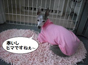 designed by *ま~ぶる*最高気温9.2℃。気温が一気に下がった雨の月曜日。時折上がる雨の合間をぬって、散歩に連れ出そうかと思ってみたのですが、みづきにはフィラリア予防薬を飲ませたし、さらはゲボして食べたフードを全部吐いちゃうしで、無理しないことに決め、今日は家事と洋服作りに勤しみました暇犬その1.暖房のスイッチを入れると、いつもの尻あぶりでは間に合わないよう・・・爆暇犬その2.いつまでも無言で道行く人を眺めてます。「誰か知ってる人でもいるのか~い?」爆