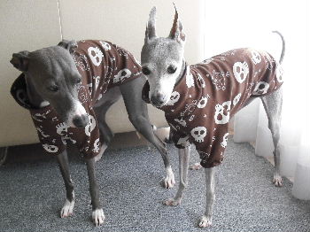 今日は雨の1日・・・散歩に行けないみづきとさらは、暖房をつけると遊び、消すと布団にもぐって寝てる実際はとても暇なふたりです。爆で、そんな暇なふたりを横目に・・・雨の日の洋服作りに精を出したはづみづママ 今回はこちら可愛いドクロ生地が手に入ったので、ドクロ柄が好きだというCOCO家のCOCOちゃんとラムちゃんのを作らせて頂きました♪これでめでたく今年2月以来のはづみづママの犠牲者となる事でしょう爆 過去の犠牲者さん達爆が、渡す前におまけがついてしまった。最近ネットで生地を調達するため、思ってた生地と違う事が時々あり、質感や生地の厚さなどなど・・・今回の黒のトレーナー生地もそうだった。切った先からポロポロポロポロ・・・縫ってる先からポロポロポロポロ・・・出来上がった時は全身ポロポロだらけだった爆おまけにボンビーでロックミシンがない為、端を簡単にかがる事しか出来ない間違いなくこれを着る度COCOラムは、黒いゴミをポロポロポロポロ撒き散らすであろう・・・爆本物の犠牲者になってしまうかもしれない?爆爆 designed by hana
