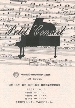 Petit Concert 200710月7日午前の部 11:00~午後の部 15:30~夜の部 19:00~音更町文化センター(ふれあいホール)入場無料今年は6教室合同のピアノの発表会です!!昨日はリハーサルでしたが...とにかく後1日、しっかりがんばりますお時間がありましたらぜひいらしてくださいね!
