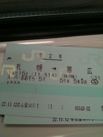 11月15日11:51スーパーおおぞら5号5号車5番....