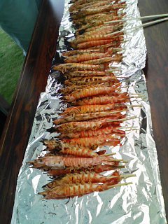 激しい三線と太鼓で歓迎され、最後は皆さん両手をあげて踊っていました。それにしても、久米島の車エビは最高でした。もちろん、海洋深層水使用です。