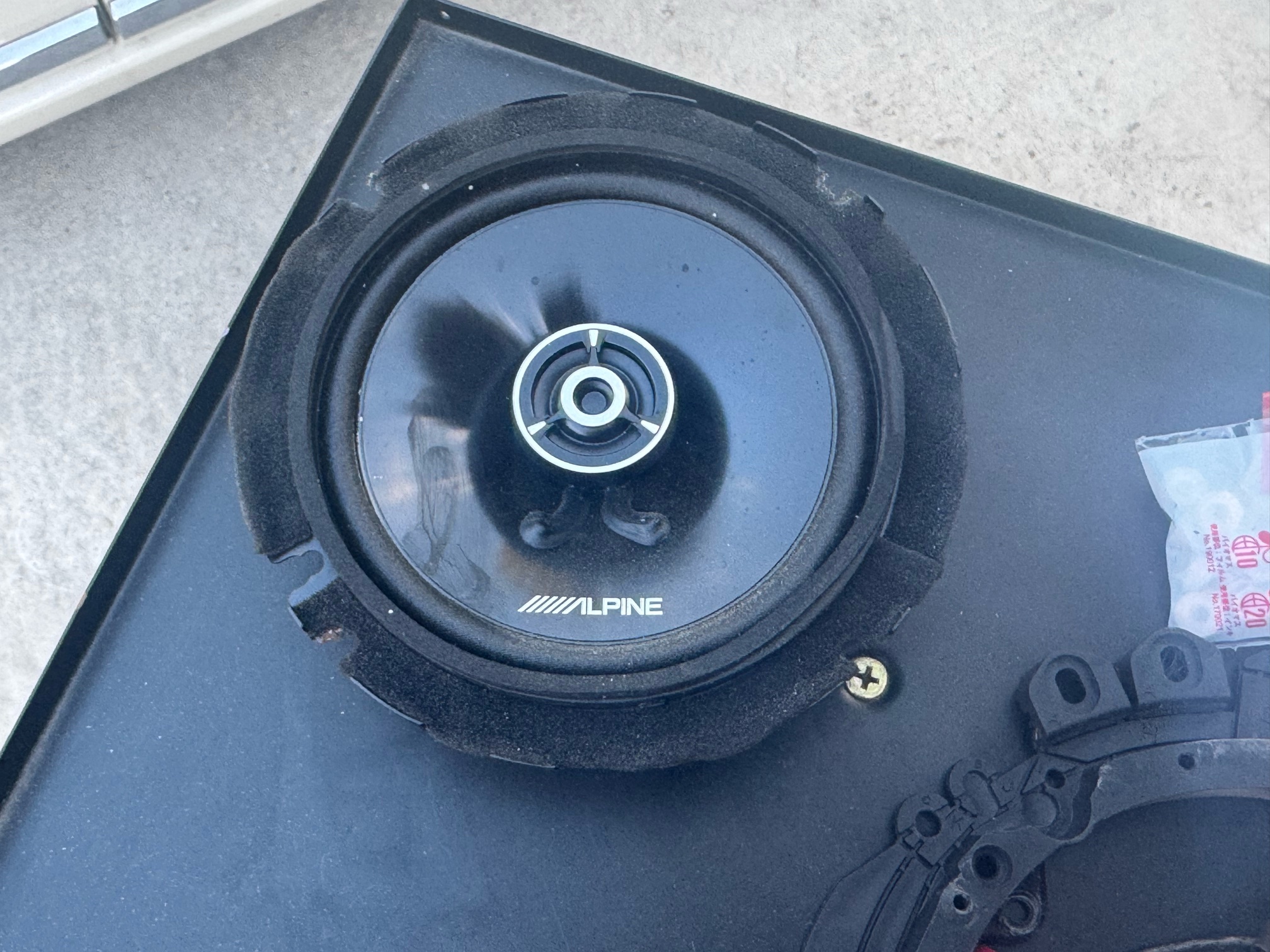 S様のN-ONEです。メインはフロントガラスに車検対応ゴーストフィルムの施工なんですがリアスピーカー交換も行います。取り付けるスピーカーはアルパインのコアキシャルスピーカーSTE-G160Cです。お友達から貰ったそうでフロントはJBLのスピーカーに交換されてるので現在、純正スピーカーが付いてるリアに取り付けします。インナーバッフルをMDFで作ろうと思っていたんですが倉庫にトレードインスピーカーに付属されていたインナーバッフルがあったのでこれを使い取り付けました。スピーカーがアルパインインナーバッフルは別メーカーの物なので少し角度が変ですが取り付け完了です。