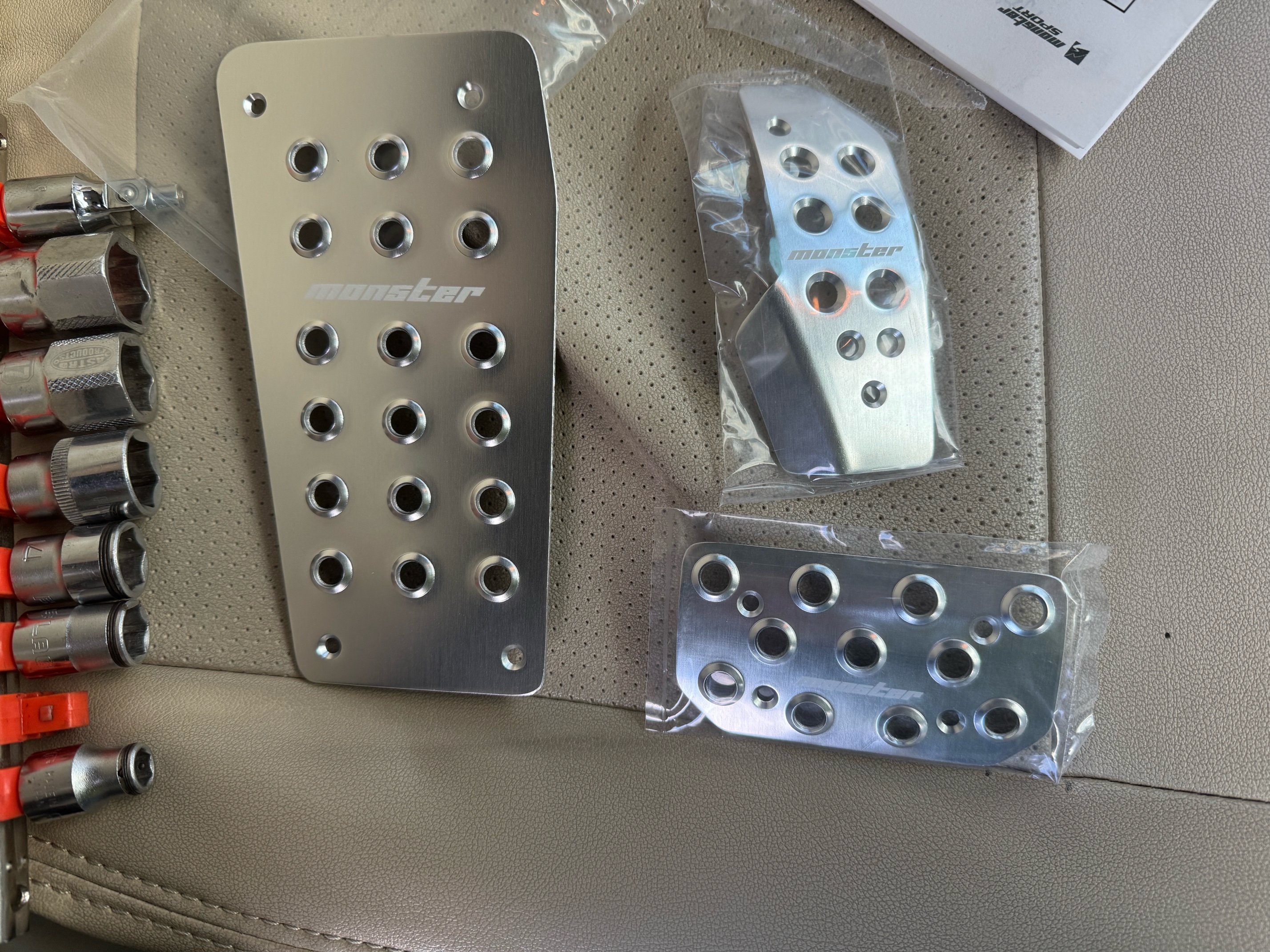 ずっと買おうか?悩んでいましたがついに買ってしまいましたモンスタースポーツのアクセル、ブレーキペダルのセットとフットレストペダルです。取り付けにはアクセルペダルを外す必要があります。位置を決め4mmのドリルで穴あけしボルト、ナットで固定します。地味に狭い箇所でボルトをナットに通すのが苦労します。一応、ネジロック剤を塗って置きました。ブレーキ、フットレストは簡単でした。取り付け後です。エブリィなのに少しレーシーに(笑)サイドブレーキペダルが寂しかったのでRAZOのサイドブレーキペダルのカバーを買いました!!なんか違和感があり納得できてません…エブリイ DA17V/W AT/5AGS スポーツドライビングペダルカバー/クリヤアルマイト モンスタースポーツ *ゆうパケットカーメイト RP125 RAZO SUPER GRIP PEDAL PKB | ペダル【FJ】Monster SPORT モンスタースポーツ 841502-3900M クリヤアルマイト アルミフットレストカバー エブリイ(DA17W,DA17V)用