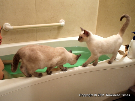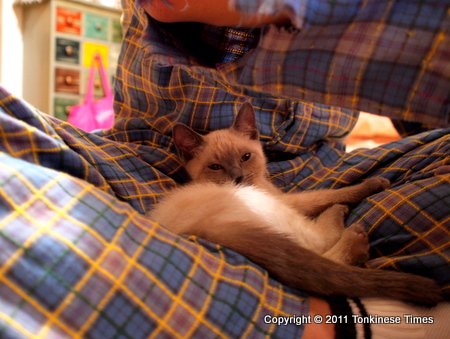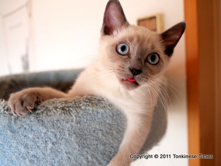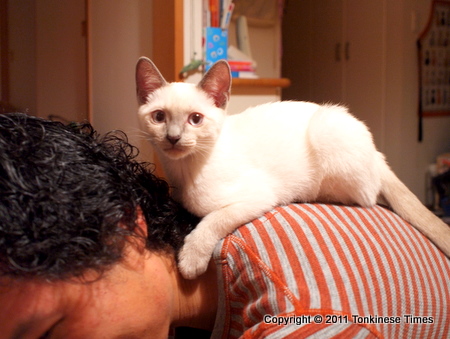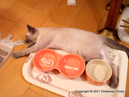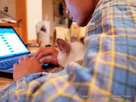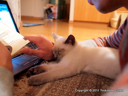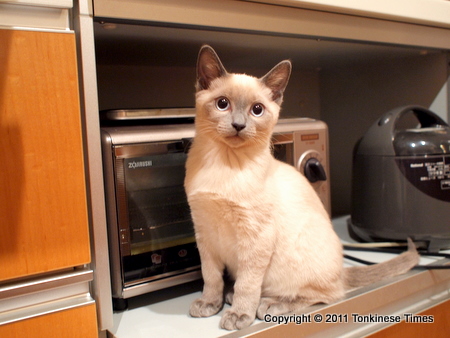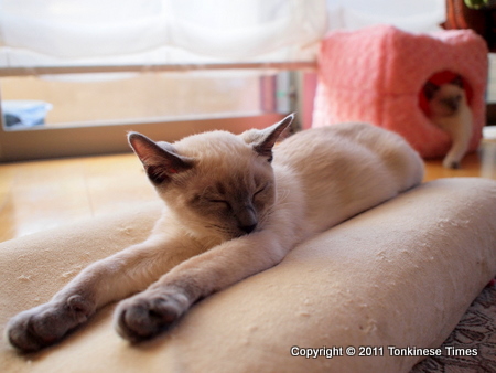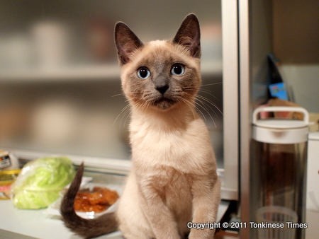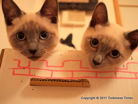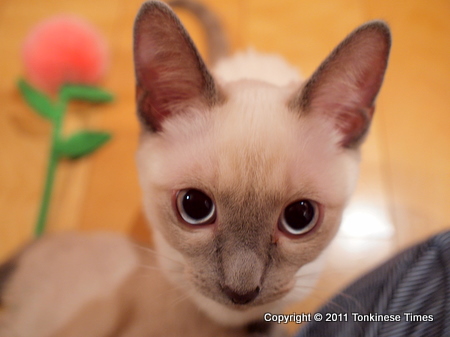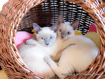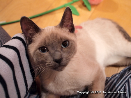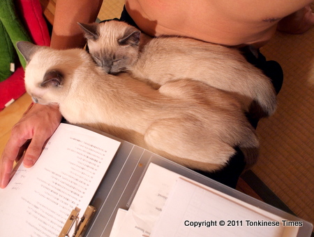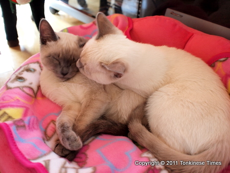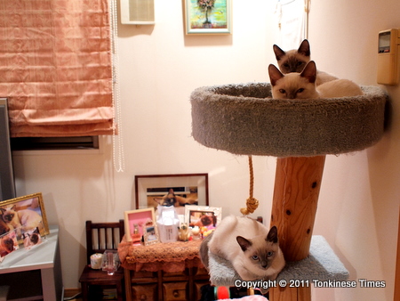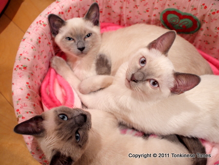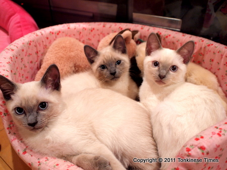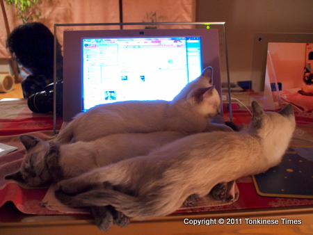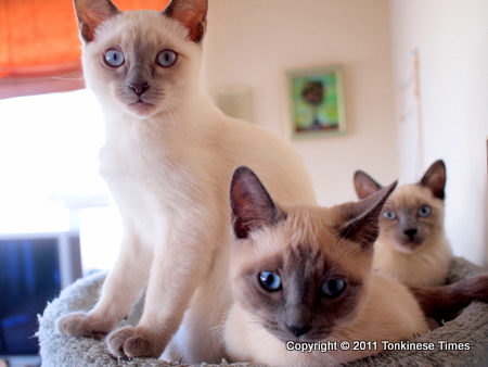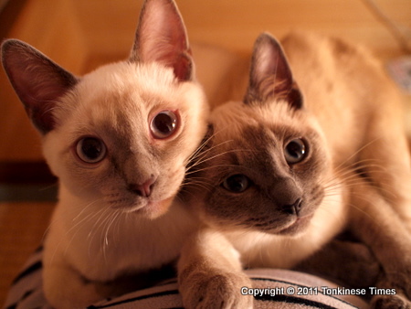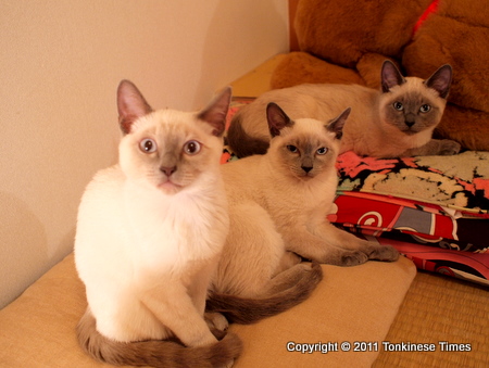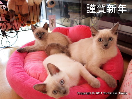 # 奥に小太郎、手前に大福、右に最中2011年 『Tonkinese Times』 ・・・昨年以上に元気いっぱい実況中継します。みなさん、たくさん遊びに来てくださいね。ブラザーズ揃っての新年のご挨拶でした!by こごママ&大中小ブラザーズ