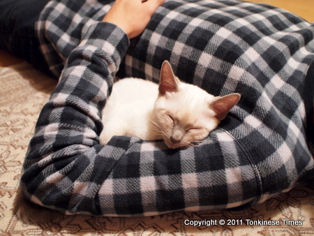 小太郎や・・・小太郎や・・・そこは君のベッドじゃないよ。相変わらずお笑い担当の小太郎でした。そんな小太郎と大福とのラブラブ動画、アップしてみましたのでご賞味ください。はい、そうです。ただの親バカ動画です。そうそう、素敵なお知らせをここでひとつ。大中小ブラザーズの実家minkwinさん宅で女の仔ふたり、男の仔ひとりのさんにんのトンキニーズの赤ちゃんが生まれましたよ。と~っても可愛いので、ご覧くださいませ。ここからどうぞ♪by 超親バカ