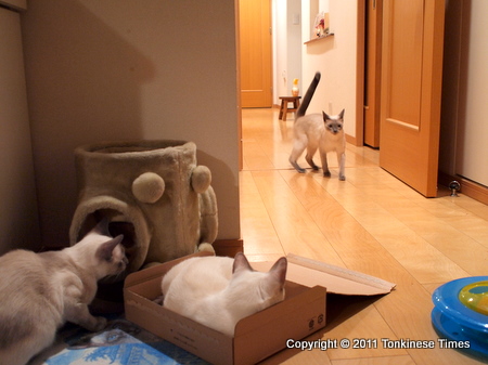 ブラザーズと一緒に暮らし始めて、早八ヶ月。さんにんの関係性も最近分かってきましたよ。# 小太郎(廊下)、大福(箱の中)、最中(箱の外)大福。人間に興味があって近くにいたいタイプ。コタさん。大福が大好きで、後を追いかけてる。もにゃ。二男坊的マイペース。もにゃはもにゃ。# 大福(箱の中)、最中(箱の外)、小太郎(ふたの下)でも何だかんだ言って、さんにんはいつも一緒。兄弟の関係ってのは面白いね~♪by 大中小専属カメラマンにほんブログ村