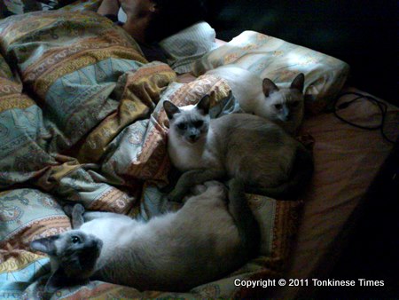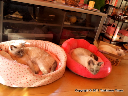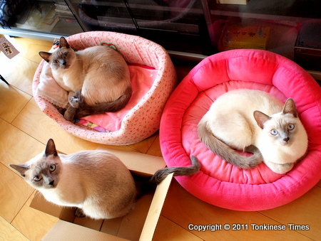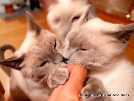 一年前の今日、覚えていますか・・・# 左から小太郎、大福、最中・・・こごママ家到着後の初ディナーTonkinese Times 第二章が始まりました。こごろっちがひとりでもパッツパツだったバスケットにさんにん入りやってきました。みんな本当にちっちゃくって華奢だった。もにゃが車酔いしちゃい大変だったなぁ。みんな、「え?なんでさんにんもいるの?」頭の中、クエスチョンマークだったもんね。懐かしく当時のコメントを読み返しては、ついつい「ふふふ・・・」と笑っちゃいます。# こごママ家到着後2日目のブラザーズあれからもう一年経ってしまったのね~。全員連れてきたことは間違いなかったな、って今でも思う。当時より強くそう思える。幸せは三倍どころか三十倍くらいかも?Tonkinese Times 第二章。# 左から大福、小太郎、最中・・・あの日から一年後の今日のさんにんこれはブラザーズの成長記録の一大絵巻。これからもブラザーズの記録を、わたしの気持ちを添えながら綴っていきましょって、一年たった今日、気持ちも新たに思ったよ。今後も大中小ブラザーズ&Tonkinese Times、温かく見守ってくださいね。by こごママにほんブログ村