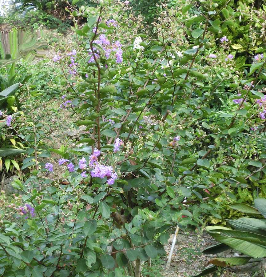 令和7年(2025年) 10月27日 月曜日 きょうの旧暦 9月7日 先負/大潮 那覇市 日の出 6:35 日の入17:51熱帯植物サルスベリ(こと百日紅または猿滑)中木 落葉広葉樹 ミソハギ科学名:Lagerstroemia indica L. 英名:Crape myrtle原産地は中国南部。沖縄での開花期:7~10月 葉は倒卵形、互生。幹は剥脱性、平滑 花は枝の先端に円錐花序、多数咲かせる、花弁は縮緬状花径は3cm前後。花色は赤紫、桃、白色等が多色 庭園樹として宅地、学校、公園などに植栽される材は硬くて耐朽力があり、床柱、農機具の柄、挽物材料に利用される 雨に濡れた幹は滑りやすく木登り名手の猿もスベル由よって猿滑りの木とか? 南西諸島にはシマサルスベリ、ヤクシマサルスベリの近種があります熱帯植物サルスベリ(こと百日紅または猿滑) 花姿中木 落葉広葉樹 ミソハギ科熱帯植物サルスベリ(こと百日紅または猿滑)切抜中木 落葉広葉樹 ミソハギ科熱帯植物サルスベリ(こと百日紅または猿滑) 花姿中木 落葉広葉樹 ミソハギ科