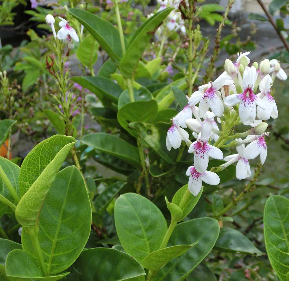 令和7年(2025年) 10月30日 木曜日きょうの旧暦 9月10日 赤口/小潮 那覇市 日の出 6:37 日の入17:49熱 帯 花 木 マルバルリハナガサモドキ(こと丸葉瑠璃花笠擬き) 低木 常緑広葉樹 キツネノマゴ科 学名:Pseuderanthemum reticulatum var. ovarifolium 沖縄県での開花時期:ほぼ周年原産地はポリネシア~ソロモン諸島 樹高は1~2m葉は濃緑色、半光沢、楕円形~広卵形、深い葉脈、対生、鋭頭。葉の色が緑から黄色に変化する。葉長は10~20cm。 花は総状花序、花弁は肉厚、中央に赤紫色の斑点が入る、上向き、花径は3~5cm、先端で大小五裂。 高温多湿を好むが乾燥に弱い熱帯植物マルバルリハナガサモドキ(こと丸葉瑠璃花笠擬き) 花 拡大低木 常緑広葉樹 キツネノマゴ科マルバルリハナガサモドキ(こと丸葉瑠璃花笠擬き) 樹姿低木 常緑広葉樹 キツネノマゴ科マルバルリハナガサモドキ(こと丸葉瑠璃花笠擬き) 花姿低木 常緑広葉樹 キツネノマゴ科マルバルリハナガサモドキ(こと丸葉瑠璃花笠擬き) 葉姿低木 常緑広葉樹 キツネノマゴ科