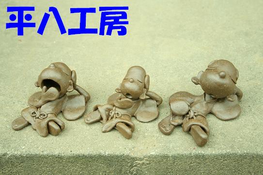 今日は縁起物の代表とも言うべき『タヌキ』です。タヌキではあの信楽焼(滋賀県)のタヌキが有名で、近所でも庭に置いてる所が沢山あります。大きい笠は、自分に降りかかる災難から身を守る為とか、顔は広く大きい方が良いとか、徳利を持ってるのは「徳する」とか「利益」の意味とか・・・・その他色々あるそうですが省略しま~す。平八工房のタヌキはいかがでしょうか???↓ご協力お願いいたします!↓人気blogランキングへブログTOPに平八工房HPのバナー追加しました!ネットショップやTシャツ販売のページにもいけるようになってます!●○●○●○●○●○出店情報○●○●○●○●○●緊急出店 10月17日 午前10時頃~午後5時 雨天決行 勝川商店街・弘法市 春日井市勝川町 JR勝川駅商店街 *駐車場はありません* http://www.o-cobo.com/ 11月18日 10:00~16:00 犬山クラフトフェア2007(第11回おもしろそうだがや) (雨天決行) 会場:犬山市 魚屋町 12月1日(土)11:00~17:00 12月2日(日)10:00~16:00 イガデハク (伊賀でデザイン博)入場無料・屋内開催・駐車場あります 会場:県立ゆめドームうえの 第二競技場 (三重県伊賀市ゆめが丘一丁目1番地の3) http://de-haku.net/06/igadehaku.htm 2008年1月1・2・3日 10:30~18:00 NEW 「クラフト手わざ衆の新春市」2008 入場無料・屋内開催 会場:静岡県浜松市グランドホテル浜松 新館2Fアトリウムロビーから宴会場へつながるフロア、通路の部分p-netbanking