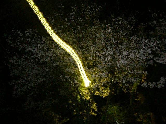 あなたは不思議な体験をしたり・・・見えないものが見えたりすることはありませんか・・・・・・・・・ということで!!!今回は怪談系?の方でいってみようかな?と考えてますwww電話とかで冗談で言ってもかなり怖いらしいけど(;ーдー)まぁ、それはさておき・・・今年の春に撮った写真なんですが・・・確か・・・「桜を撮りに行ってきます!!!」とかいう内容だったような気がします(日記でねwその日の昼にほんとは撮ろうと思ってたんですが・・・あいにくデジカメを忘れてしまって、夜に行こう!!と決めてたんですよそれで時間は過ぎていき・・・夜になって、親が寝てから行こうと、考えてたんですねいろいろ言われるのがいやだったからで・・・そして目的地に向かってる途中に友達に会って港のほうが綺麗だよ!!と聞いて場所がわからないと言うと一緒にいくわとなんとも頼りがいのあるwwwまぁそれで馬鹿な話をしていたためぜんぜん怖くなく・・・夜の公園だったんですけどね(;゚д゚)そこで自分は撮るのが下手なほうだから、友達に写真を撮ってくれるように頼んだんですよまぁ友達は快く了承してくれました。それで何枚か撮っていると・・・撮ってしまったんですね!!!心霊写真を・・・人型ではないですけど、どう考えてもこれは心霊だな・・・と思いましたよ(;ーдー)その写真がこちら↓言っておきますが!!!加工などは一切しておりません!!!天然ものです!!!wwwまぁ笑いことじゃないんですけどねいや~~あの時はびっくりしましたよ・・・なにせ撮ってしまうとはね(;´∀`)まぁ今日はこの辺にしときましょう。怪談系の話はこれからもやりますよ!!夏はこれからですからwwwついでに・・・コメのほうも募集しときたいと思います!!感想じゃなく、こういうことが自分はありました!!みたいな?まぁ要するに・・・恐怖系のコメですねwwwよろしくです!!!それではこの辺で・・・ばいっば~~い☆ノシ~PS~クリスタルさん!!遅くなってしまってすいません・・・