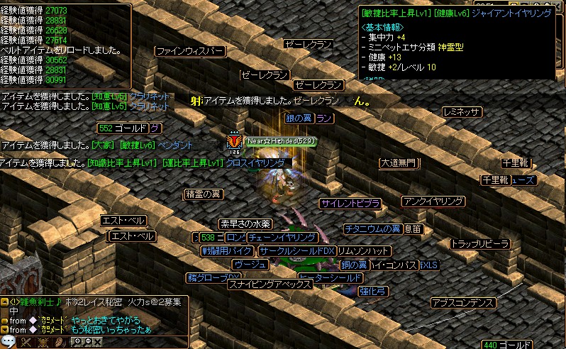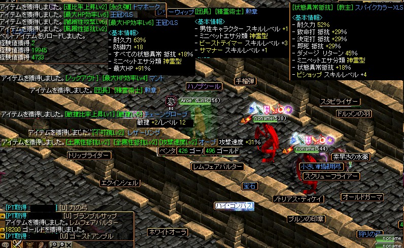 こんちゃ(;´;゜ё゜;;) 編集したのはいいけど更新だるくてやってませんでした 編集した後に出たUとか編集し直すのだるいので次回にまわしますね;;なんか補正微妙なのが多かったけど呪い致命指とかHP致命鎧とかはまぁまぁな値段で売れたワイドハンドとストーンボウがWどろっぷして嬉しくて泣きました 攻城うはww無理じゃねwwwwってなったけど以外といけそうだったんだけどもこればぐで1%とかじゃなくてがちで1%だったんだすごい惜しかった俺が巻物あと1セット持っていけば落とせたかもしれないそんな感じでした。今週は何が何でも落とします^-GDB3行きたいので^-^ 買物とかはこんな感じあと防御速度77+薬170くらいのだぶりんを10Mで買いました さてすて装備でも晒すよ狩りのだけdあとひこ着てるからせーふにしたら敏捷が240くらい落ちる感じふう微妙ですよねまだまだ改良しないといけませんね;o;^p^;o; んじゃこの辺でのし^- こんぐびる☆