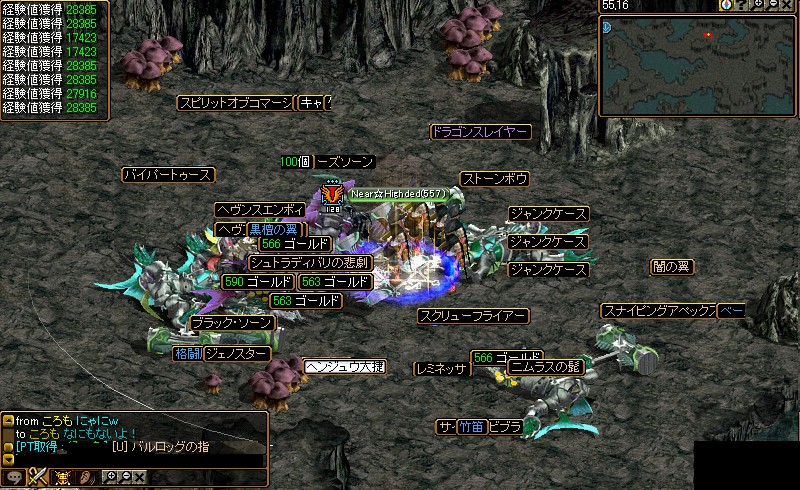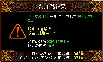 こんにちは 今日が臨時メンテで明日が定期メンテですか?^-: だめおん様あんまりふざけないで下さいね。 めんてなので更新しようと思います。 あ、WIZのG移籍の件沢山のお誘いありがとうございました。今回はラオス共和国さんで御世話になろうと思います。これからよろしくお願いします~あとシフを紅い翼に移籍させました。その代わりにBISをちきんに戻しました。リーグ戦の間の募集禁止みたいなのがあるらしいですがキャラの入れ替えもNGなのかな?それならそれでリーグ戦は参加しないのでいいですけど。あとひとつ自分は基本的に団子嫌いなので団子をするギルドに移籍するつもりはありません。 さてGv結果から~ ラオスに移籍して最初のGvリーグ戦2戦目だったそうです。チキンのGvに遅刻したからなのは内緒ですチキンのリーグ戦初戦人数差がすごかったですねーBIS一人だったんですが途中で桜さんが街に戻され途中からBIS無しでした。雪中花戦鏡月戦リトルさんにずっと足止めされてました。なぜ俺が狙われたのかはわからないですけど・・ずっとシフで攻撃してる人がいたので狙ってみたら簡単にLAとれたりして楽しかったです。あかね色に染まる坂戦終始団子。そとに出てた剣士さんを倒して勝利五代目 なると組戦シフで翼に移籍して最初のGvここも団子でした天使さん足止めしてたんですけど足はやくて全然止められなかったです鯖落ちでチキンのGvが途中で終わったから参加したのはないsy 初めて最後までP戦参加しました。何も出来ずに見てるだけでした・・ 傘さんが生命拾ったらしく売ってもらいました。耳いただきました。ありがとうございます! こんな街中でも気にせず愛し合うけつさん GDB5行ってきました。結構おいしいですよここついでにどろっぷまとめスフィア切れてたのでほとんどないですけど・・では終わり